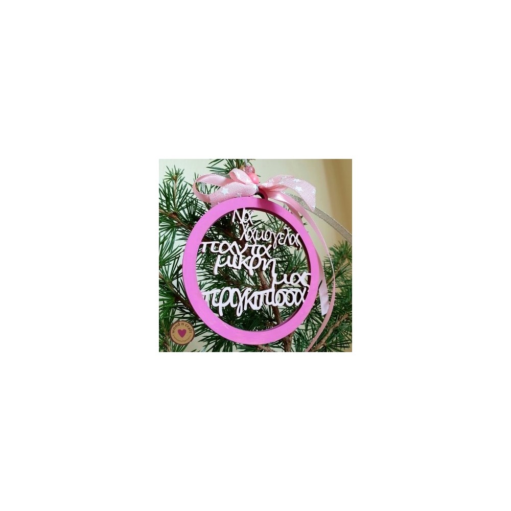 Ξύλινο χριστουγεννιάτικο στολίδι με αφιέρωση για τη μικρή σας πριγκίπισσα, βαμμένο σε χρώμα της επιλογής σας και διακοσμημένο με κορδελίτσες!