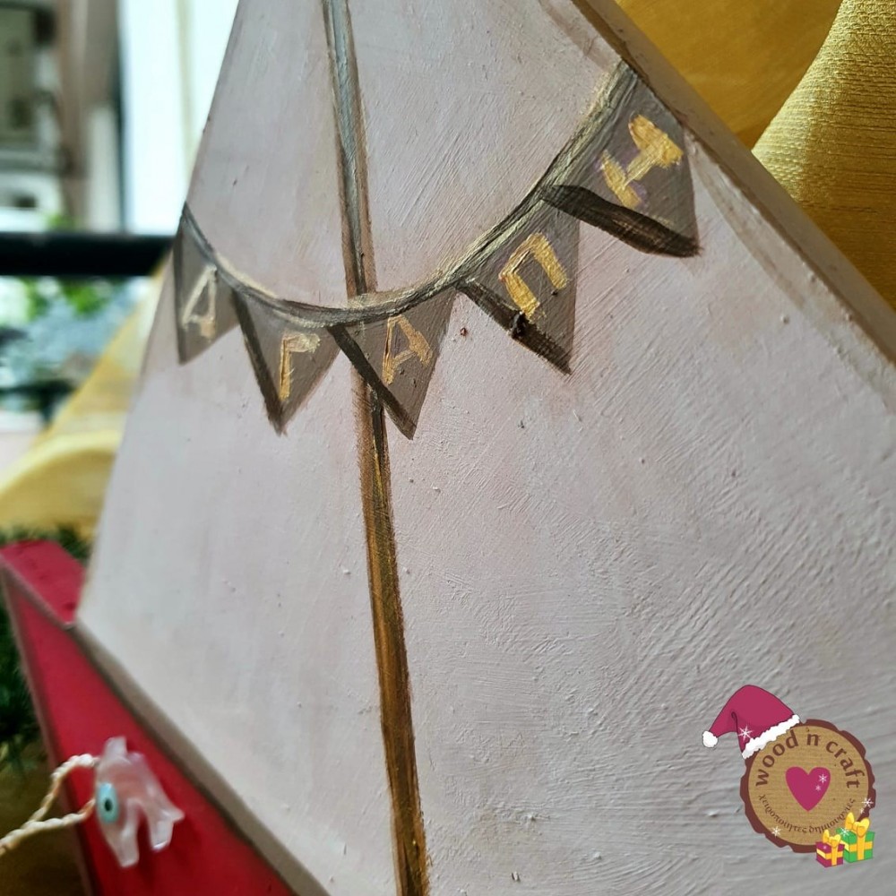 Χειροποίητο ξύλινο αυτοστηριζόμενο γούρι καράβι για ένα καλότυχο νέο έτος γεμάτο αγάπη! Βαμμένο στο χέρι σε χρώματα της επιλογής σας και διακοσμημένο με ένα δελφινάκι με κρεμαστή φουντίτσα.