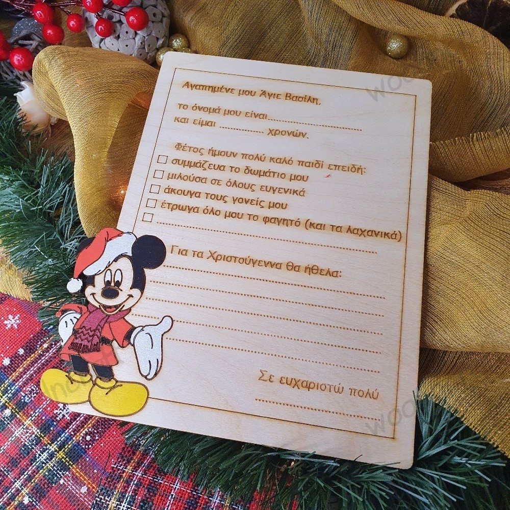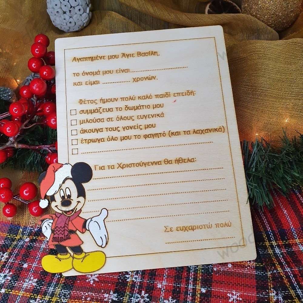 Ξύλινη κάρτα Μίκυ Μάους - Γράμμα στον Άγιο Βασίλη