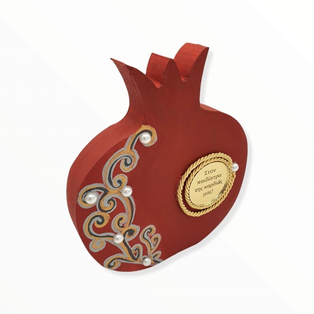 Χειροποίητο ξύλινο αυτοστηριζόμενο γούρι σε σχήμα ροδιού για ένα καλότυχο νέο έτος γεμάτο αγάπη! Ζωγραφισμένο στο χέρι, λουστραρισμένο και διακοσμημένο με πέρλες, κορδόνι και στρόγγυλο στοιχείο από χρυσό καθρέφτη πλεξιγκλάς χαραγμένο με αφιέρωση για τους αγαπημένους σας!
