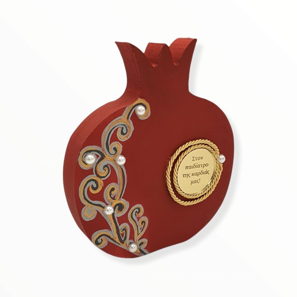 Ξύλινο επιτραπέζιο γούρι - Ρόδι ζωγραφιστό