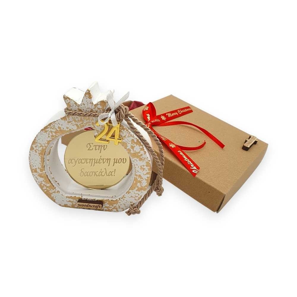 Χειροποίητο γούρι σε κουτάκι - Κεραμικό ρόδι με αφιέρωση