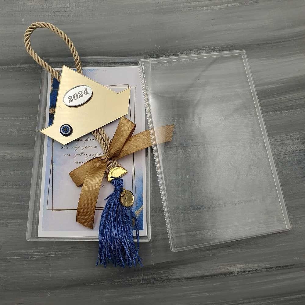 Η συσκευασία περιλαμβάνει ένα διάφανο ακρυλικό κουτί, ιδανικό για δώρο ή για την εμφάνιση του γουριού στο σπίτι. Εκτός από το γούρι, το κουτί περιέχει μία όμορφη κάρτα που ταιριάζει απόλυτα με το μέγεθος του κουτιού, τυπωμένη με την προσωπική σας αφιέρωση, καθιστώντας το σετ πραγματικά ξεχωριστό.