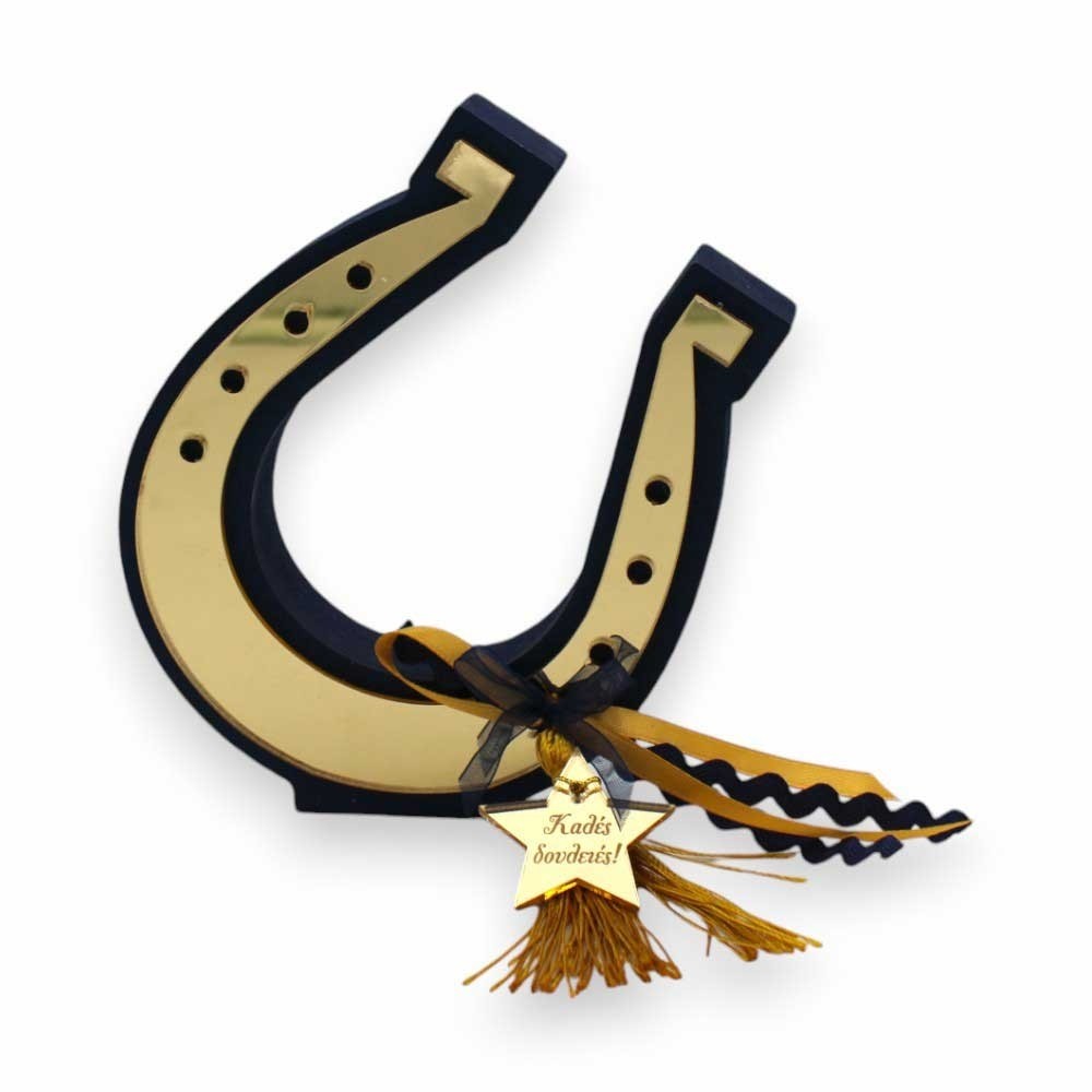 Φτιαγμένο από ξύλο και χρυσό πλεξιγκλάς καθρέφτη, αυτό το γούρι ξεχωρίζει για την πολυτέλειά του.