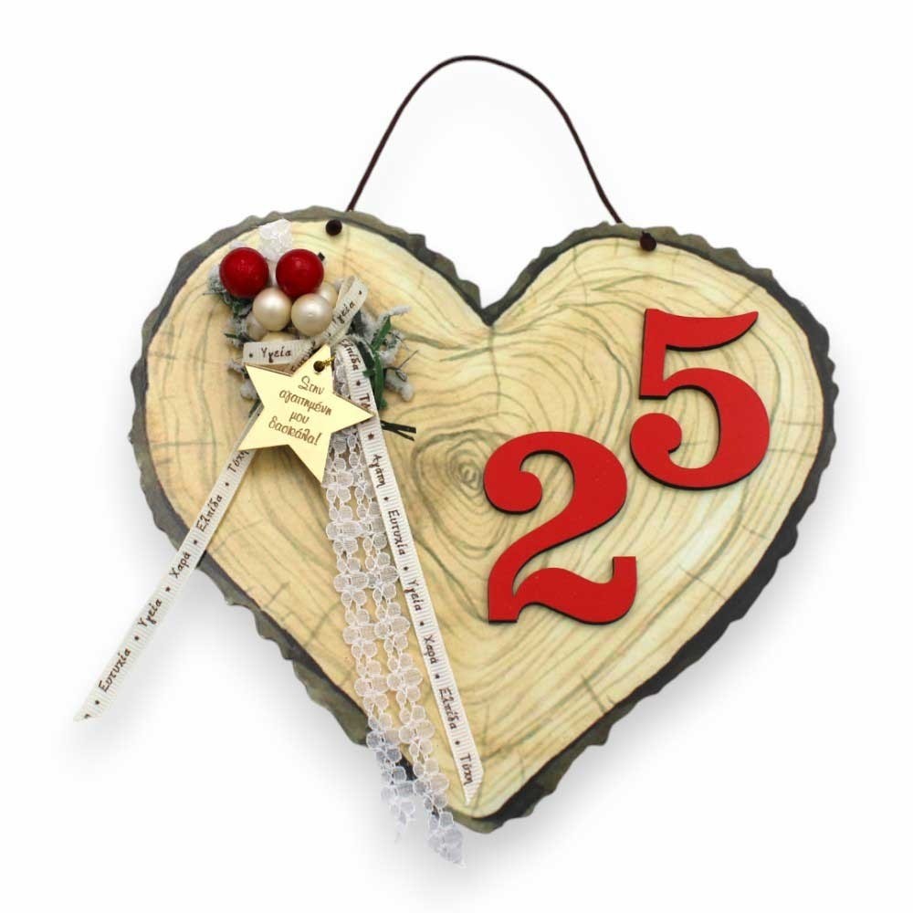 Κατασκευασμένο από ξύλο με UV εκτύπωση που αναδεικνύει την υφή του φυσικού ξύλου, διαθέτει τον αριθμό "25" και είναι ιδανικό για να γιορτάσετε τα Χριστούγεννα με στυλ.