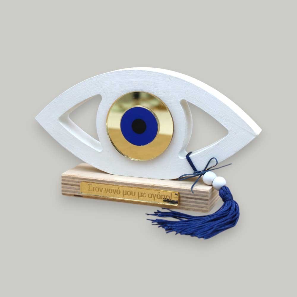 Χειροποίητο επιτραπέζιο γούρι - Μάτι διάτρητο με αφιέρωση