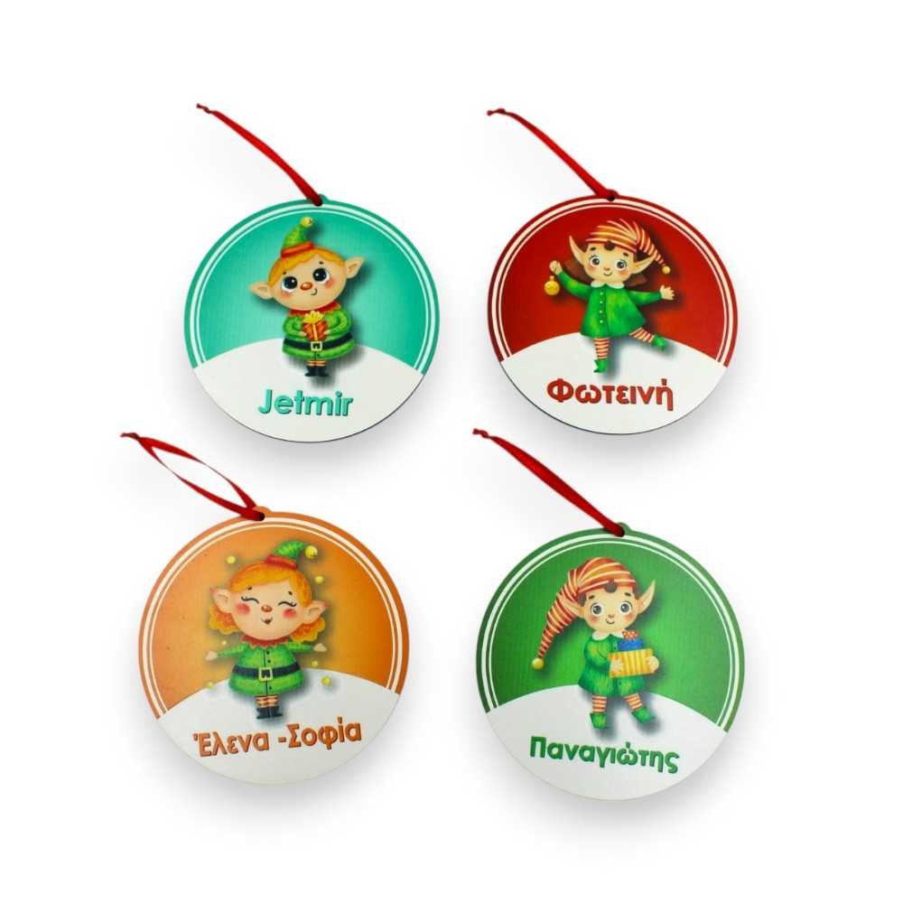 Ξύλινα στολίδια με όνομα - Χαρούμενα ξωτικά