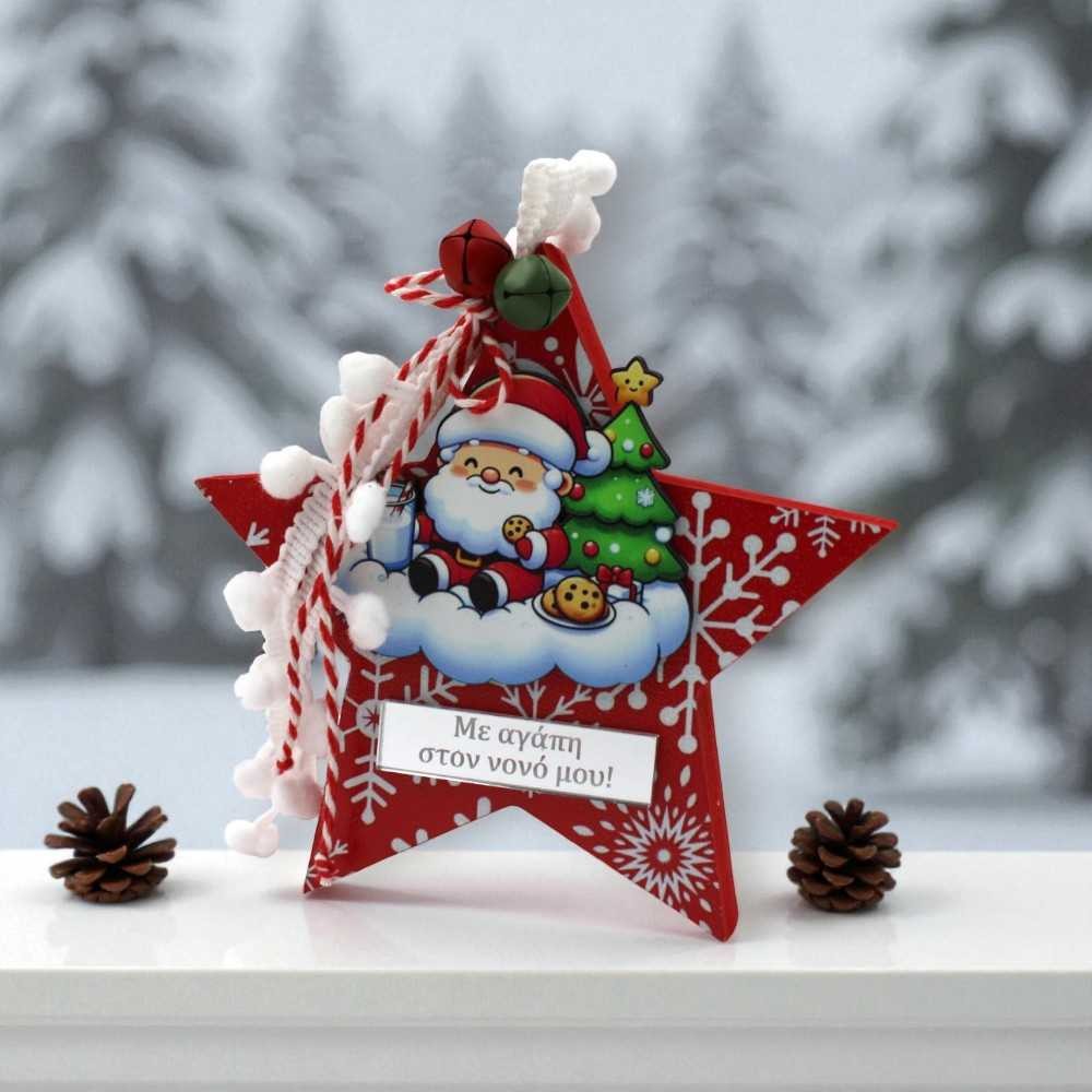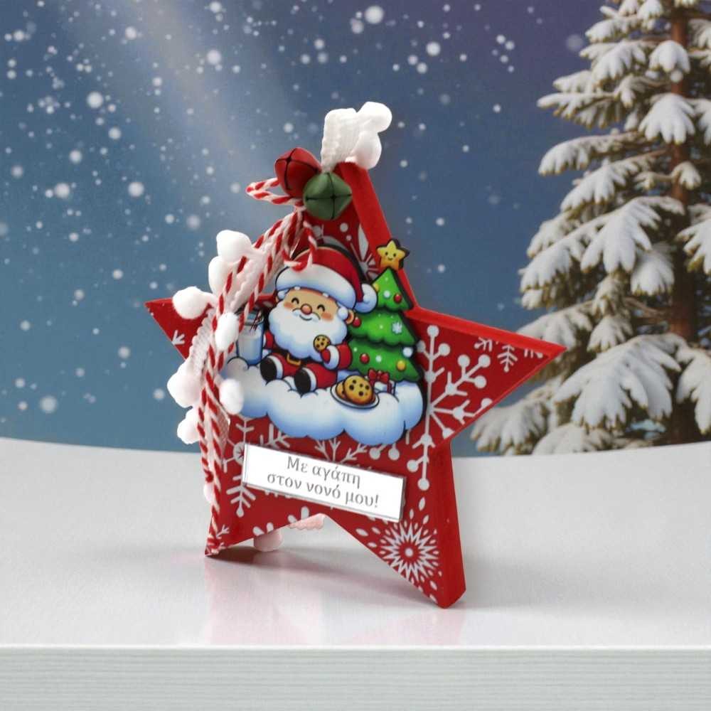 Χειροποίητο Διακοσμητικό - Αστέρι με Άγιο Βασίλη