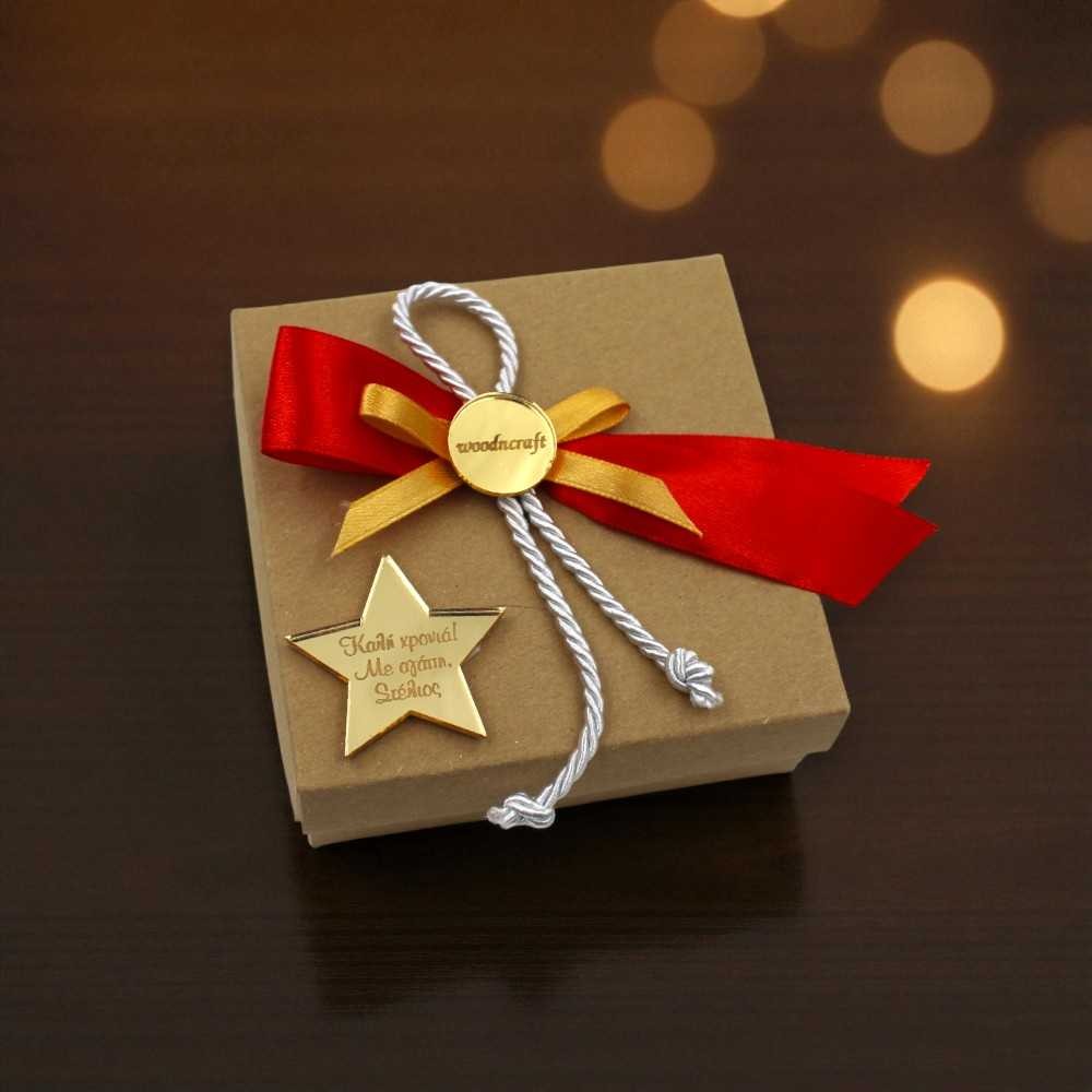 Το γούρι συνοδεύεται από κομψό κουτί δώρου, στολισμένο με φιογκάκι και χρυσό καθρέφτη plexiglass αστεράκι, επάνω στο οποίο χαράσσεται προσωπική ευχή, κάνοντάς το μοναδικό και ιδιαίτερο για κάθε παραλήπτη.