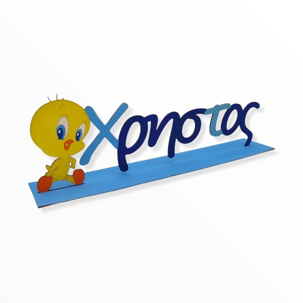 Μοναδικό ξύλινο χειροποίητο σταντ όνομα της επιλογής σας με προσαρμοσμένο το αγαπημένο καναρινάκι Τουίτι!