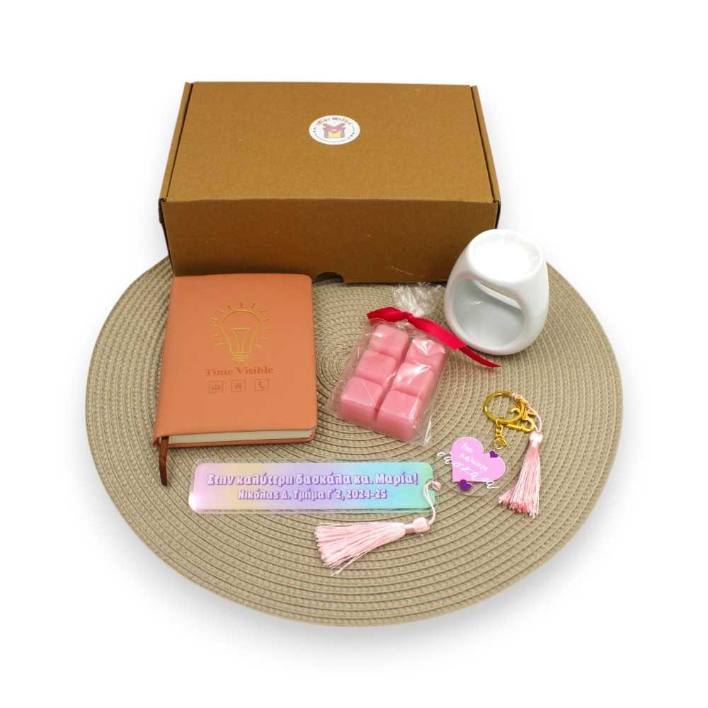 Ένα ξεχωριστό κουτί δώρου, σχεδιασμένο με αγάπη για να εκφράσει την εκτίμηση και τη συγκίνηση προς τη δασκάλα που στάθηκε πλάι στους μικρούς μαθητές με φροντίδα και έμπνευση.