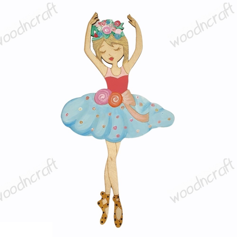 Ξύλινη φιγούρα - Μπαλαρίνα λουλουδάτη