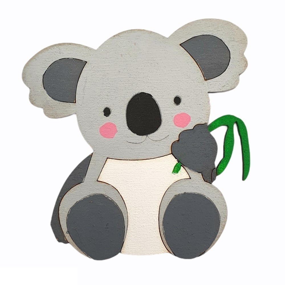 Ξύλινο σταντ στολισμού βάπτισης σε σχέδιο κοάλα να κρατάει ένα κλαδάκι μπαμπού. Ένα πρωτότυπο σχέδιο κατάλληλο για τη διακόσμηση του παιδικού δωματίου, τον στολισμό βάφτισης αλλά και του πάρτι γενεθλίων!