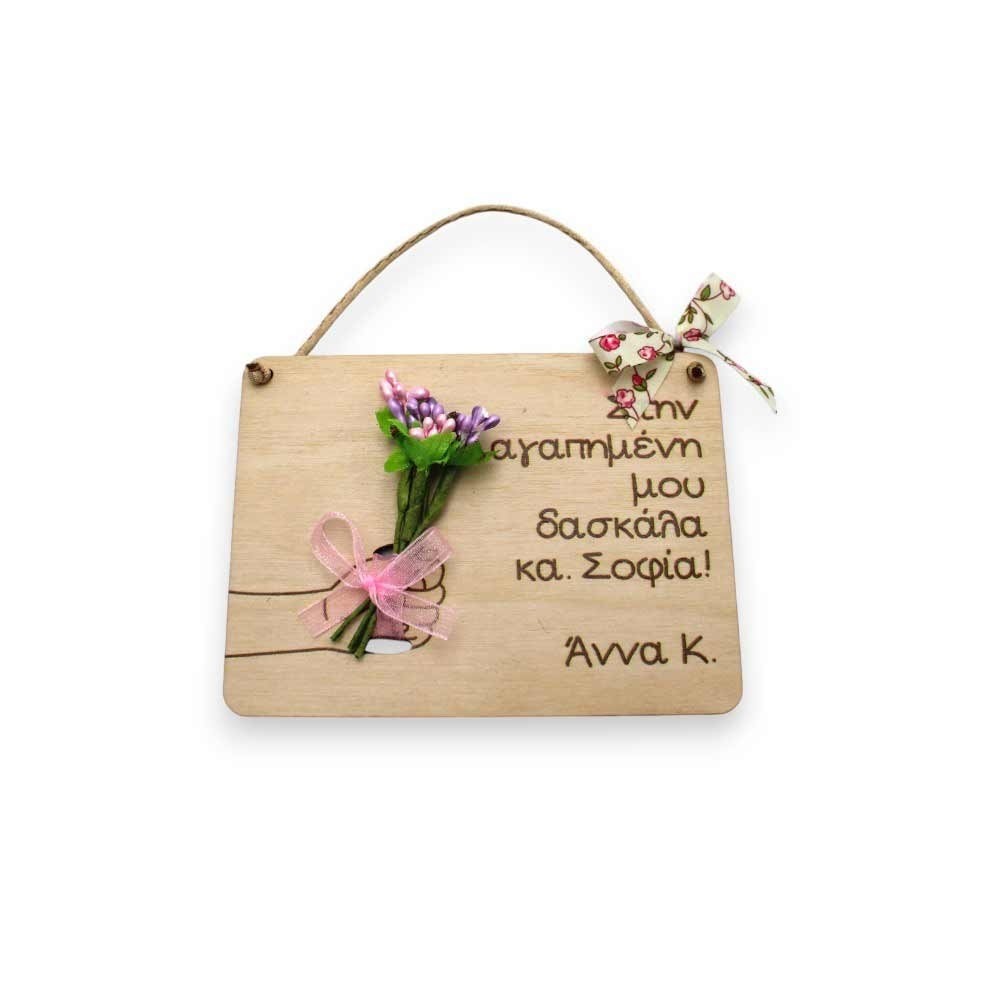 Προσωποποιημένο ξύλινο καδράκι - Λουλούδια για την δασκάλα