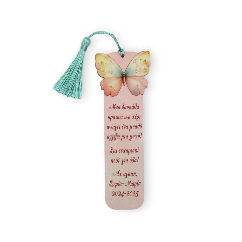 Διακοσμημένος με μια πεταλούδα σε παλ αποχρώσεις και ένα ευχαριστήριο μήνυμα, αποτελεί την ιδανική αναμνηστική προσφορά από μαθητές προς την δασκάλα τους.