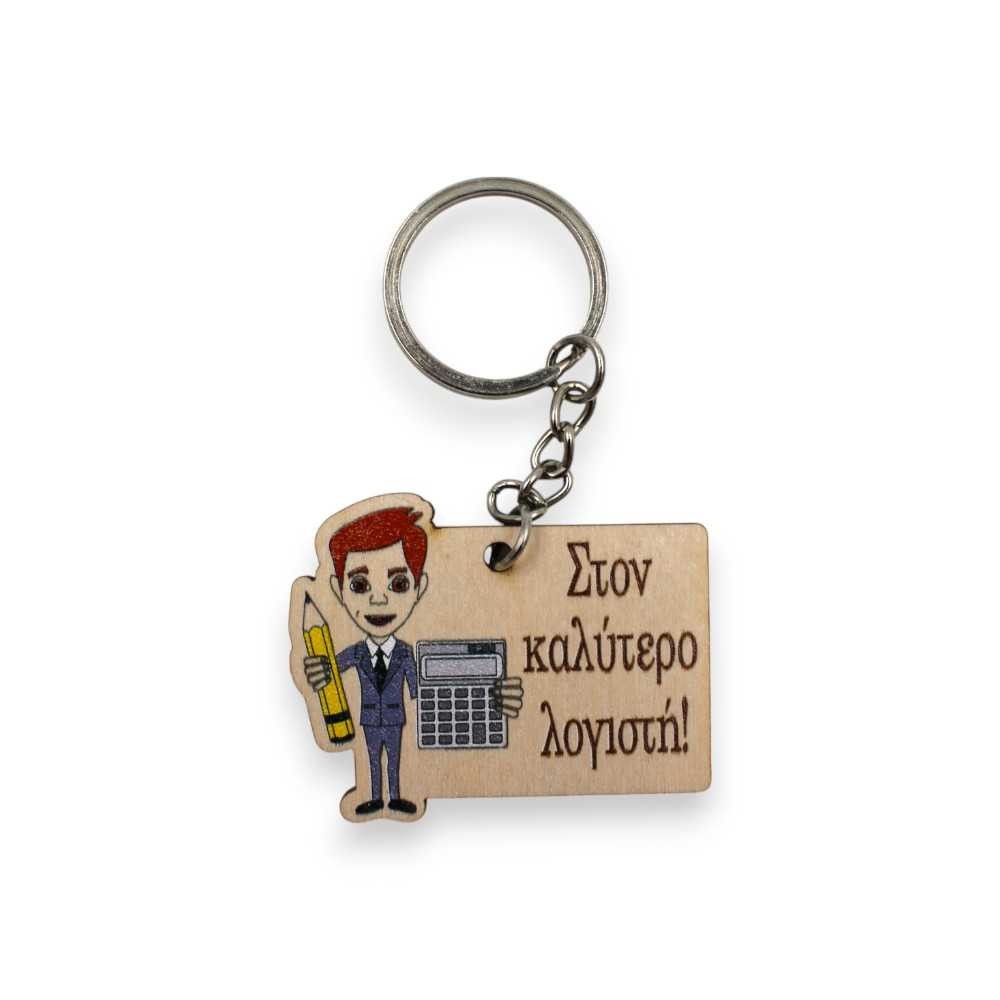 Πρωτότυπο ξύλινο χειροποίητο μπρελόκ με τον καλύτερο λογιστή και χαραγμένη αφιέρωση! Βαμμένο και φτιαγμένο με μεταλλικό αλυσιδάκι και κρίκο.