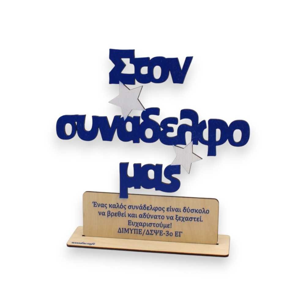 Ξύλινο χειροποίητο επιτραπέζιο διακοσμητικό δωράκι για τον αγαπημένο σας συνάδελφο, με αστεράκια και χάραξη της δικής σας αφιέρωσης!