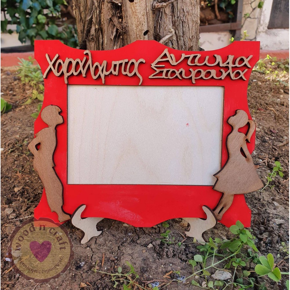 Πρωτότυπη ξύλινη επιτραπέζια κορνίζα βαμμένη και διακοσμημένη στο χέρι με ένα αγοράκι, ένα κοριτσάκι, τα ονόματα και το χρώμα της επιλογής σας! Μία διαφορετική επιλογή διακόσμησης για ερωτευμένους!