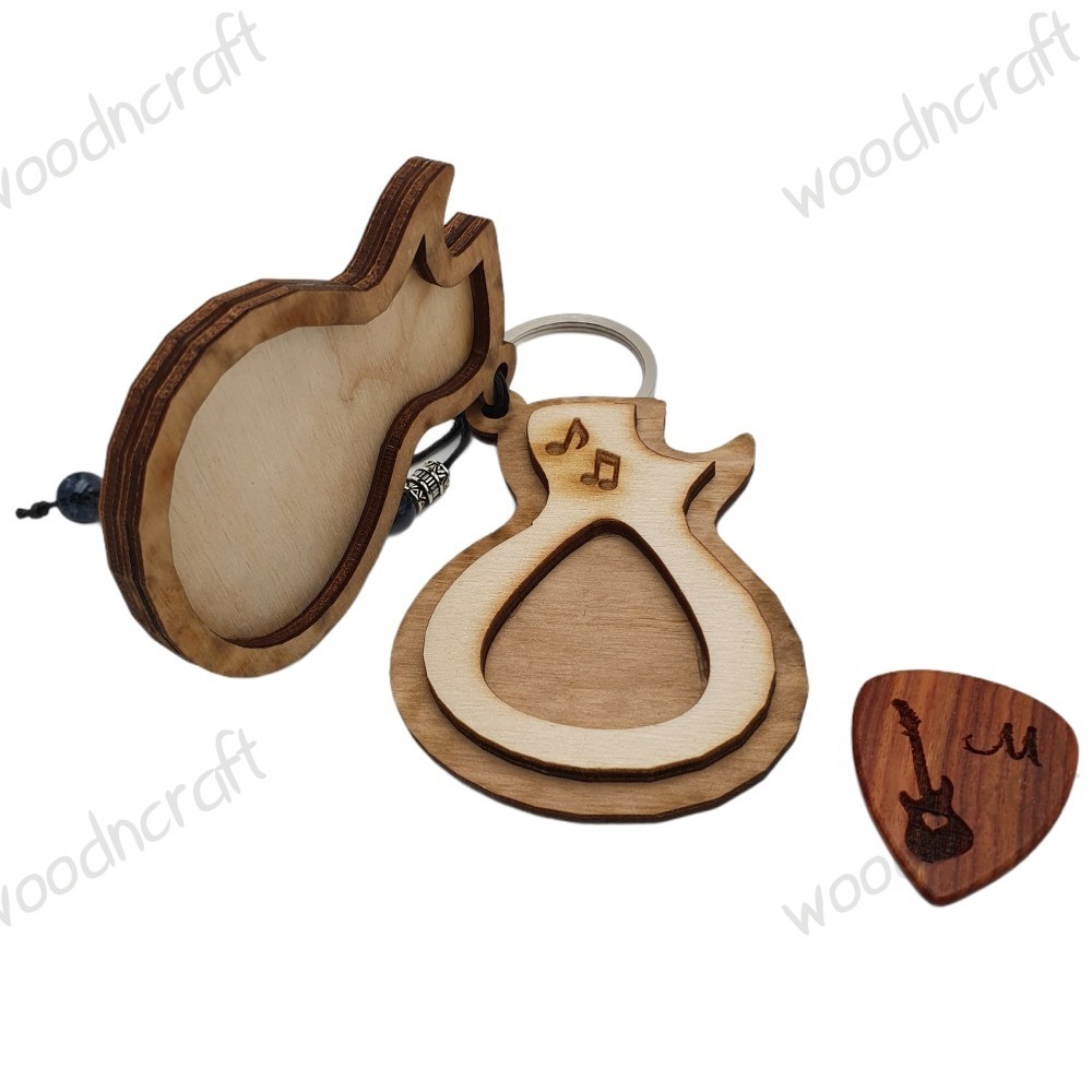 Ξύλινο χειροποίητο μπρελόκ πενοθήκη σε σχήμα κιθάρα, χαραγμένο με το όνομα και την αφιέρωση ή το στιχάκι της επιλογής σας και διακοσμημένο με χάντρες και μεταλλικά στοιχεία!