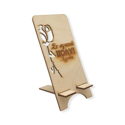 Ξύλινο διακοσμητικό σταντάκι στήριξης κινητού τηλεφώνου, με διάτρητο τριαντάφυλλο και χαραγμένη την αφιέρωσή σας! Ένα χρηστικό, πρακτικό και προσωποποιημένο δωράκι για να εντυπωσιάσετε τους αγαπημένους σας!