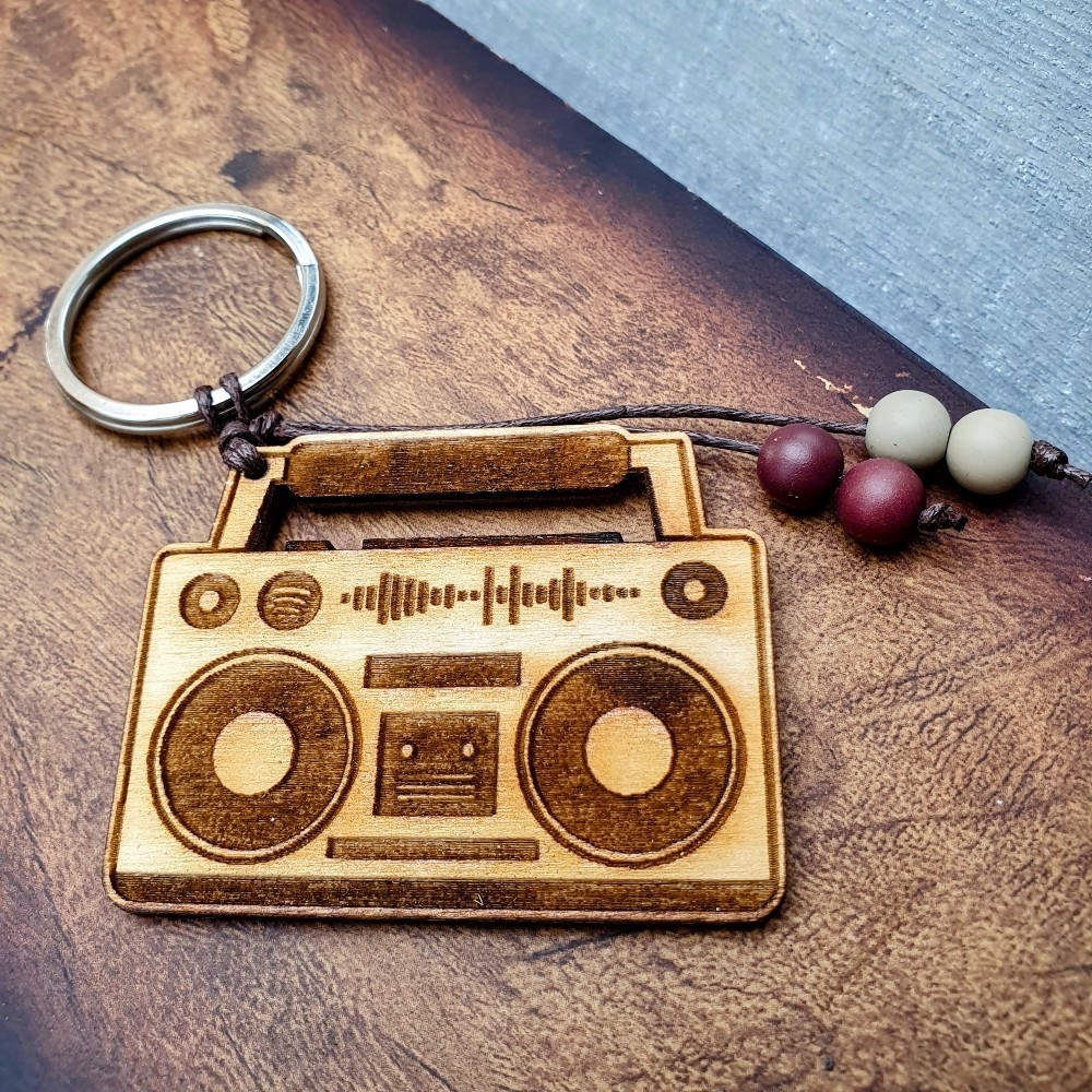 Μοναδικό ξύλινο μπρελόκ με χαραγμένο το κρυφό τραγούδι της επιλογής σας. Το μπρελόκ-κασετόφωνο είναι διακοσμημένο με αλυσίδα και κρικάκι σε ασημί χρώμα, στο οποίο κρέμεται ένα μαύρο σχοινάκι με χάντρες διαφορετικού χρώματος! Για τους λάτρεις της vintage εποχής δημιουργήσαμε αυτό το πρωτότυπο δωράκι, ώστε με ένα απλό σκανάρισμα μέσα από την εφαρμογή, να ακούτε οποιαδήποτε στιγμή το αγαπημένο σας κομμάτι!