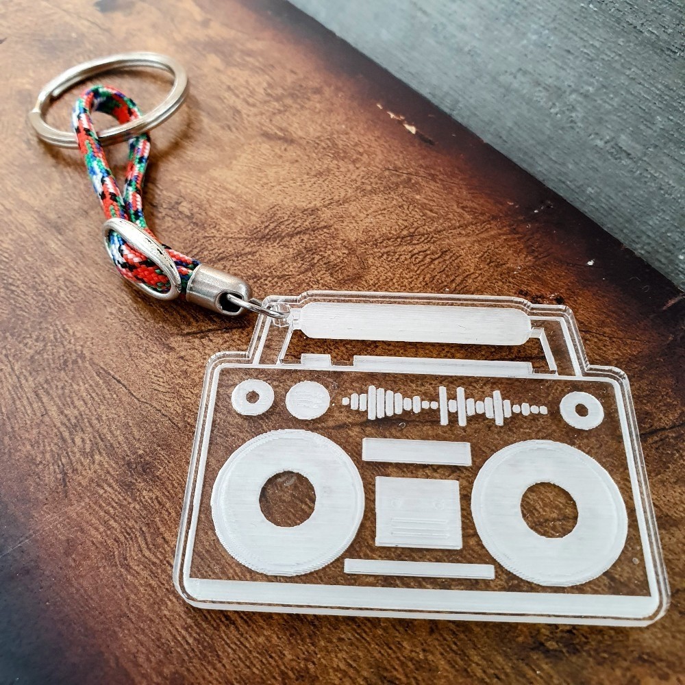 Μοναδικό πλεξιγκλάς μπρελόκ-ραδιόφωνο με τυπωμένο το κρυφό τραγούδι της επιλογής σας. Το μπρελόκ είναι διακοσμημένο με πολύχρωμο κορδόνι και κρικάκι σε ασημί χρώμα! Για εσάς τους πιο ''fancy and classy'' δημιουργήσαμε αυτό το πρωτότυπο δωράκι, ώστε με ένα απλό σκανάρισμα μέσα από την εφαρμογή, να ακούτε οποιαδήποτε στιγμή το αγαπημένο σας κομμάτι!