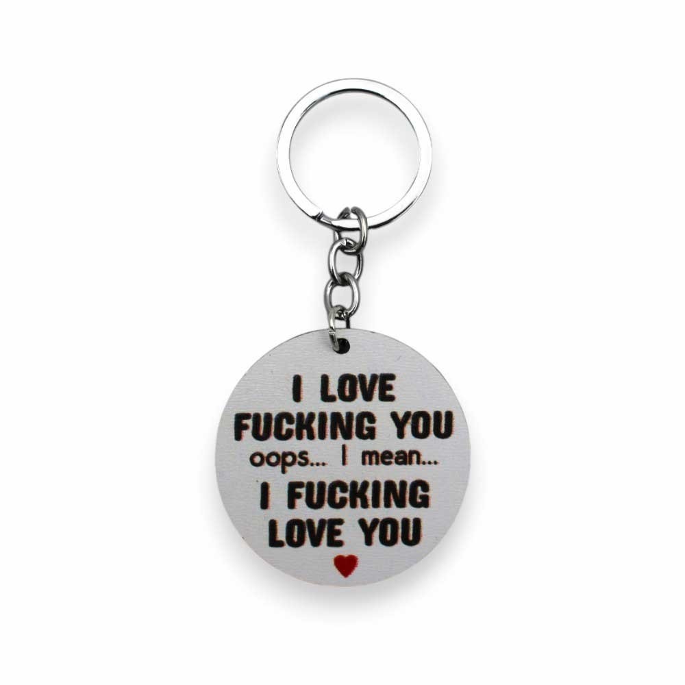 Ξύλινο εκτυπωμένο μπρελόκ - I F**KING LOVE YOU