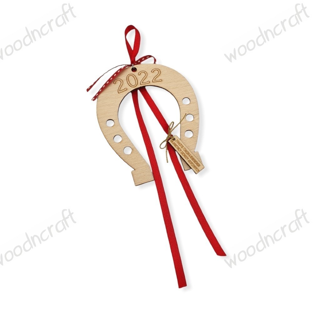 Πρωτότυπο ξύλινο χειροποίητο γούρι σε σχέδιο πέταλο χαραγμένο με τη χρονιά που μας έρχεται! Διακοσμημένο με κορδελάκια και ταμπελάκι χαραγμένο με τα στοιχεία σας!