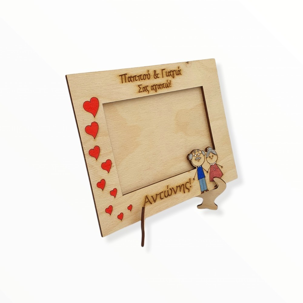 Μοναδική ξύλινη επιτραπέζια κορνίζα με την γιαγιά και τον παππού, πολλές πολλές καρδούλες και χαραγμένο το όνομα της επιλογής σας!