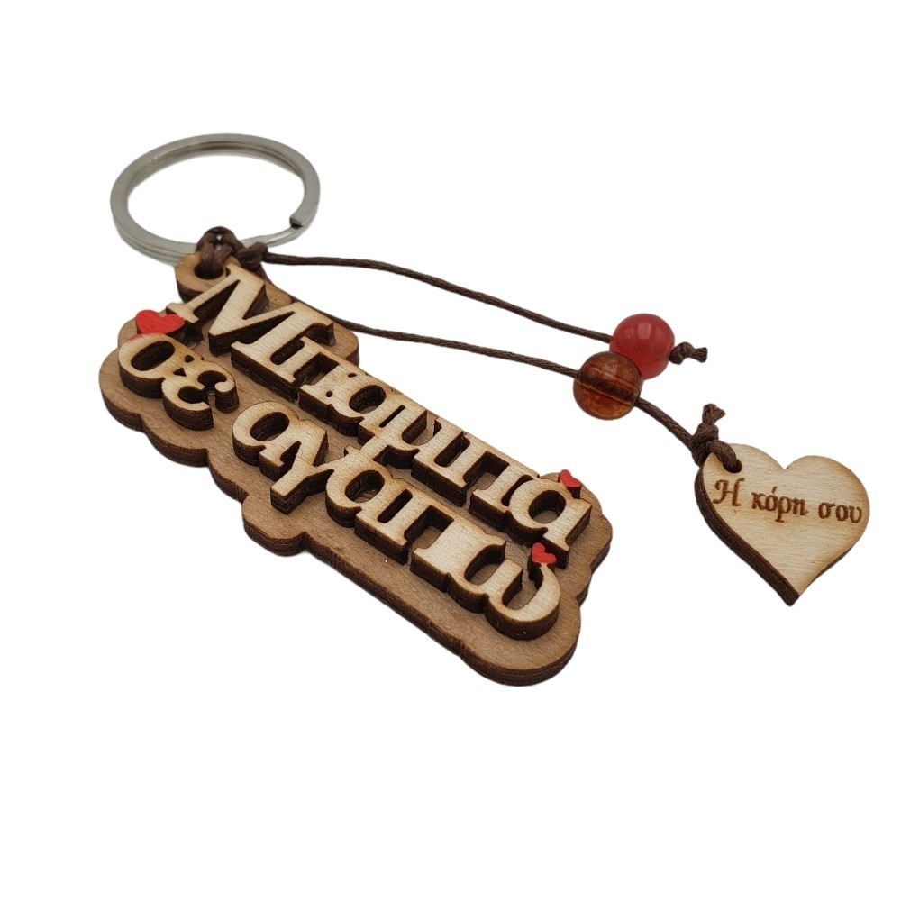 Ξύλινο χειροποίητο μπρελόκ με αφιέρωση μπαμπά σε αγαπώ, διακοσμημένο με χάντρες και ξύλινη χαραγμένη καρδούλα!