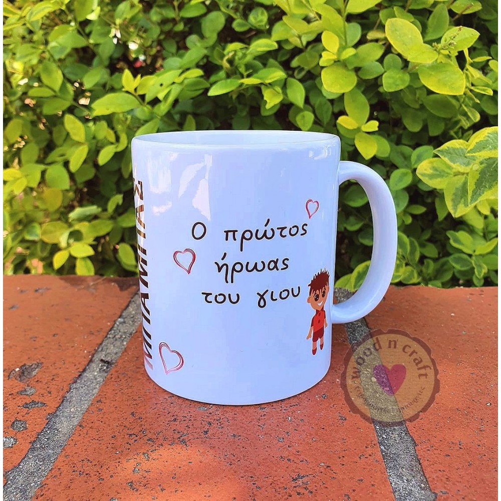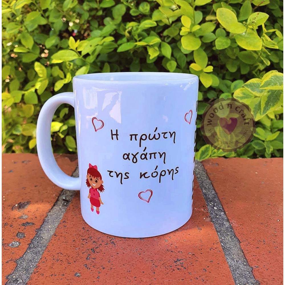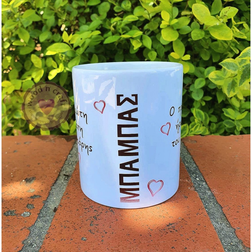 Ξεχωριστή κούπα από λευκή πορσελάνη με αφιέρωση για τον μπαμπά! Χαρίστε ένα χαμόγελο στον μπαμπά με το πιο γλυκό πρωινό μήνυμα από την κόρη και το γιο του handmade by Woodncraft.