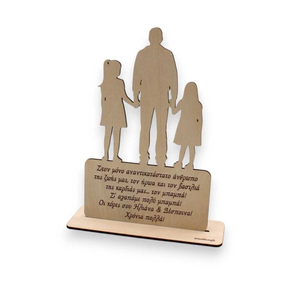 Στην πάνω πλευρά φαίνεται ο πατέρας να περπατάει χέρι-χέρι με τις δύο κόρες  του και από κάτω ακριβώς υπάρχει χαραγμένη αφιέρωση της επιλογής σας.