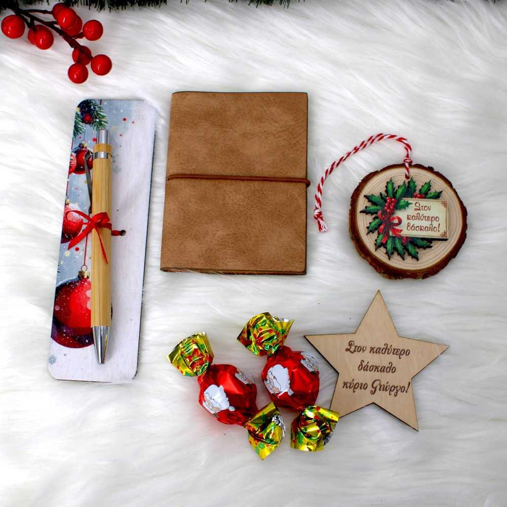 Ένα κομψό και πρακτικό χριστουγεννιάτικο gift box, ειδικά φτιαγμένο για να εκφράσετε την εκτίμησή σας στον αγαπημένο σας δάσκαλο. Ένα δώρο που συνδυάζει συναίσθημα και χρησιμότητα, ιδανικό για τις γιορτές.