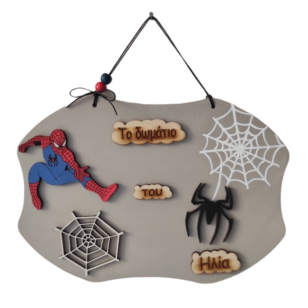 Το καδράκι δωματίου Spiderman είναι ένα χειροποίητο ξύλινο ταμπελάκι που θα διακοσμήσει το δωμάτιο του παιδιού σας με μοναδικό τρόπο. Το θέμα του είναι ο αγαπημένος ήρωας των παιδιών Spiderman και φυσικά θα είναι εξατομικευμένο με το όνομα της επιλογής σας. Το καδράκι είναι βαμμένο σε χρώματα που ταιριάζουν με το παιδικό δωμάτιο και είναι φτιαγμένο από ξύλο. Το μέγεθός του το καθιστά ιδανικό για την τοποθέτησή του σε κάθε γωνιά του δωματίου, προσδίδοντας μια μαγική ατμόσφαιρα στον χώρο.
