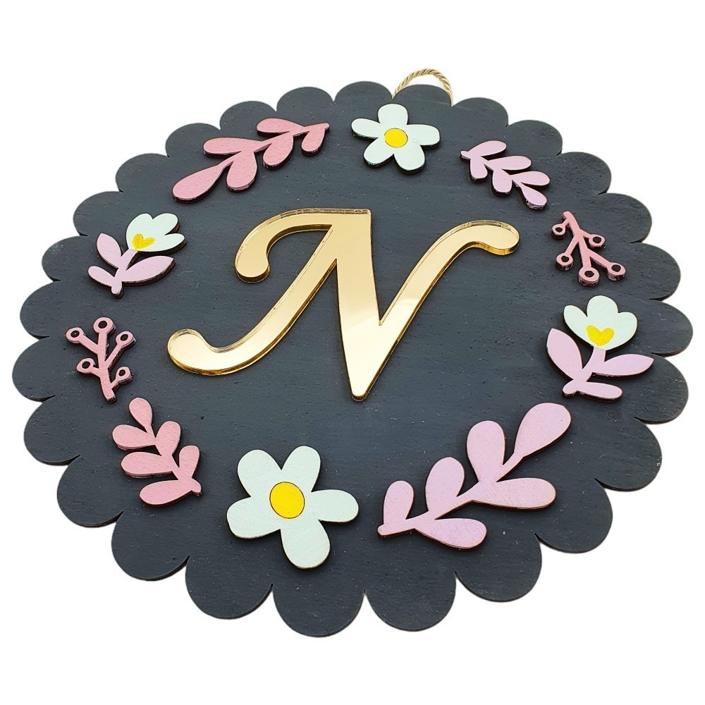 Ξύλινο χειροποίητο διακοσμητικό κάδρο με μονόγραμμα της επιλογής σας σε χρυσό καθρέφτη! Διακοσμείται με πλαίσιο από λουλούδια και κλαδάκια και βάφεται σε χρώματα που επιθυμείτε.