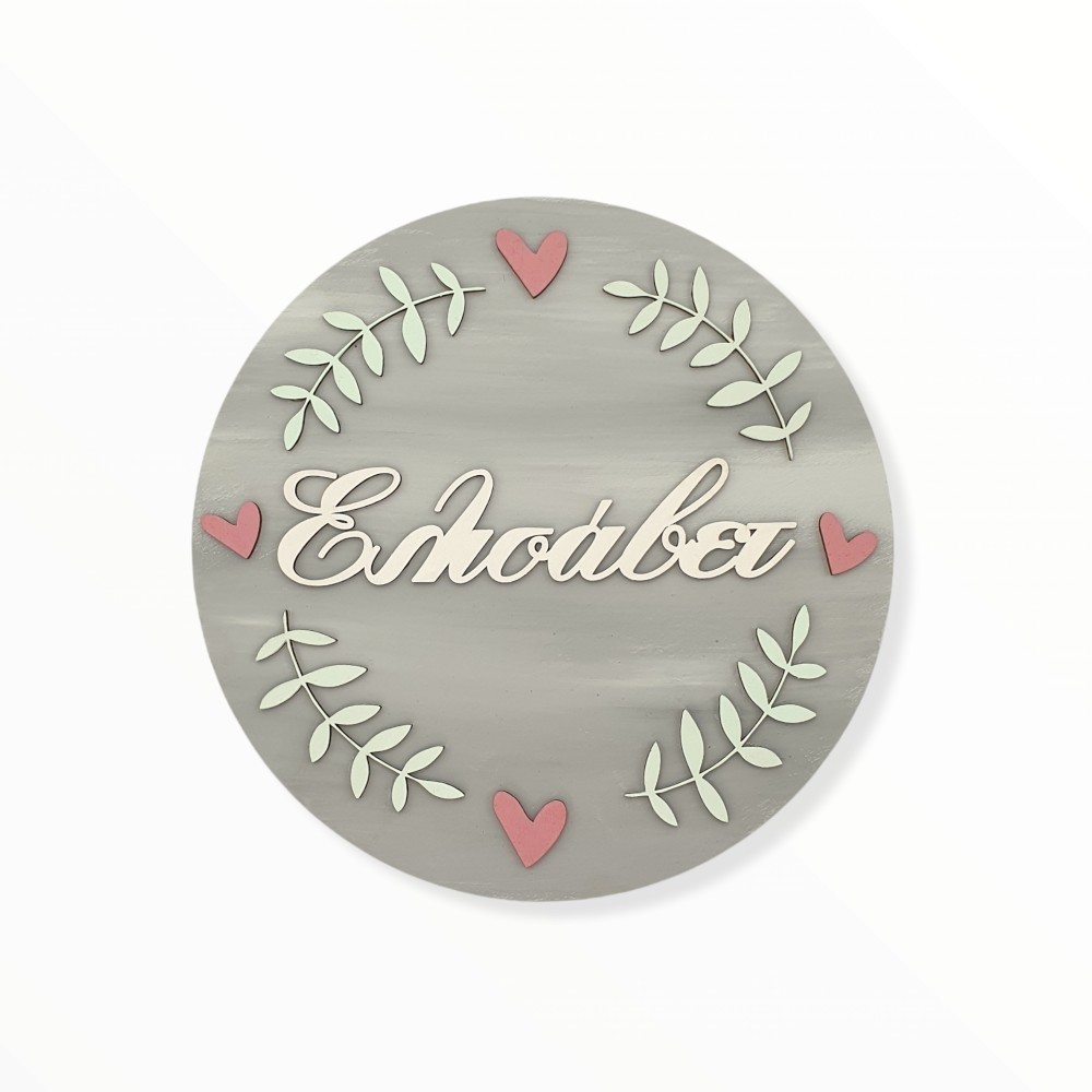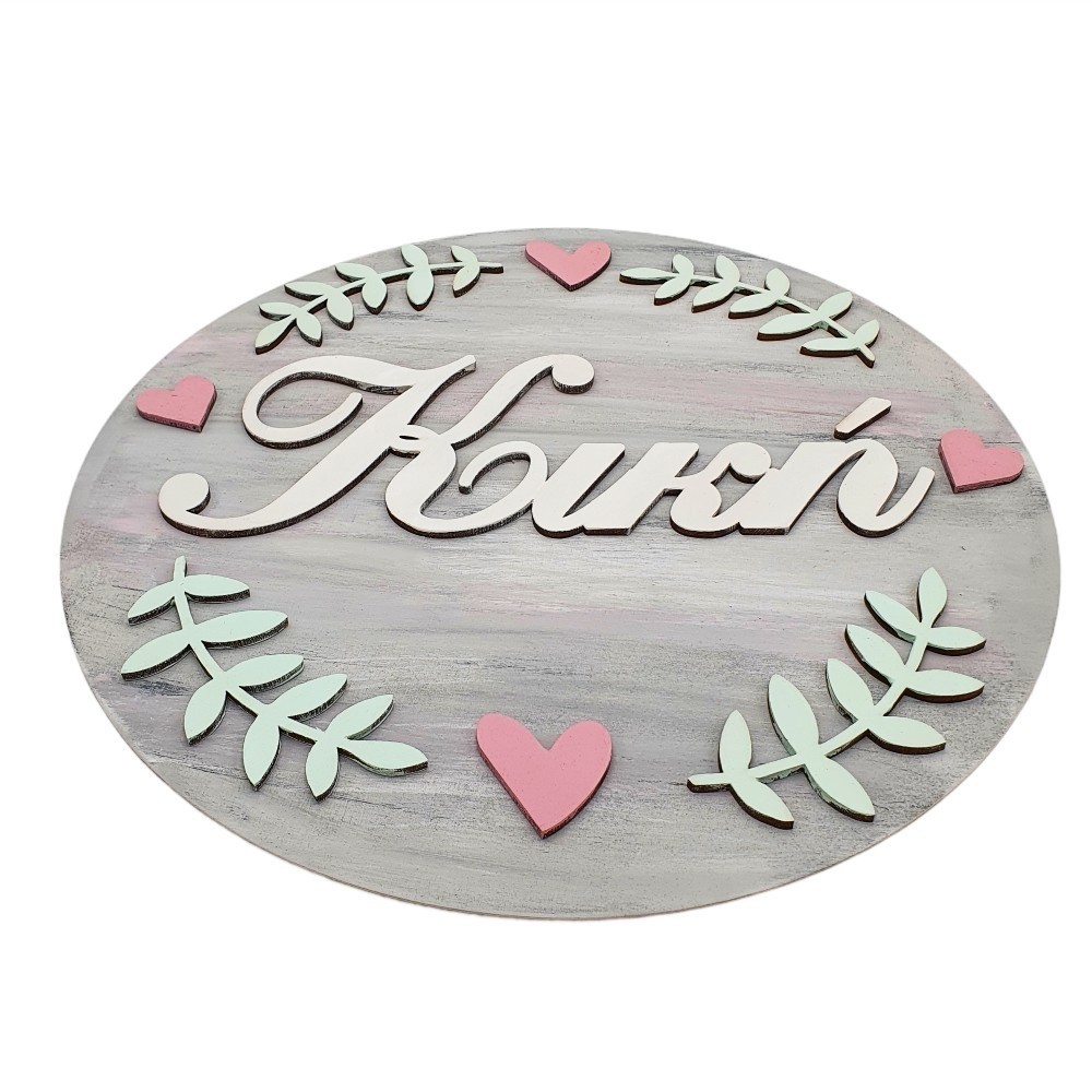 Ξύλινο χειροποίητο διακοσμητικό κάδρο με όνομα της επιλογής σας! Διακοσμείται με πλαίσιο από ξύλινα κλαδιά και καρδούλες και βάφεται σε χρώματα που επιθυμείτε.