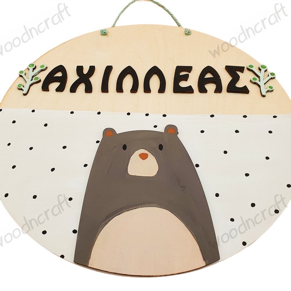 Ξύλινο χειροποίητο διακοσμητικό κάδρο με αρκούδο και το όνομα της επιλογής σας! Βάφεται σε χρώματα που επιθυμείτε.