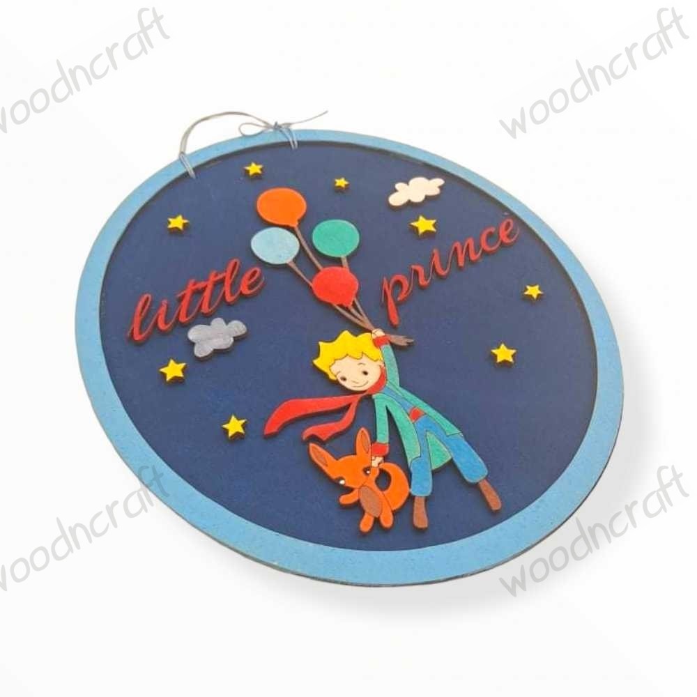 Ξύλινο χειροποίητο διακοσμητικό κάδρο με τον αγαπημένο μικρό πρίγκιπα μαζί με την αλεπού του και μπαλόνια στα χέρια, σε ένα νυχτερινό ουρανό γεμάτο αστέρια! Βαμμένο και διακοσμημένο με την φράση little prince ή με το όνομα της επιλογής σας! Ένα μοναδικό καδράκι έτοιμο να διακοσμήσει το πιο όμορφο παιδικό δωμάτιο και να κλέψει τις εντυπώσεις!