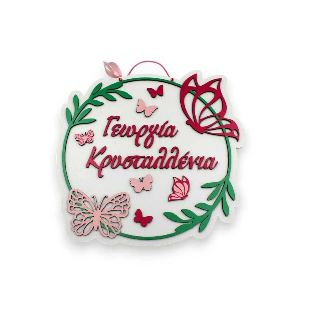 Ξύλινο παιδικό κάδρο με πεταλούδες και όνομα
