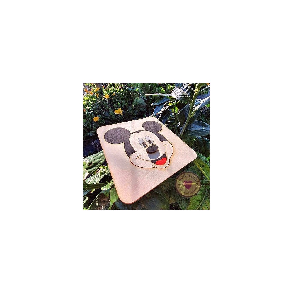 Πρωτότυπο και μοναδικό ξύλινο προσκλητήριο βάπτισης παζλ σε σχέδιο Μίκυ Μάους. Αφαιρούμε το κεφάλι του αγαπημένου μας Μίκυ και ανακαλύπτουμε χαραγμένο το κειμενάκι πρόσκλησης μαζί με τα στοιχεία της βάπτισης, βάζουμε τον Μίκυ στην θέση του και δημιουργούμε ένα όμορφο παιδικό διακοσμητικό!