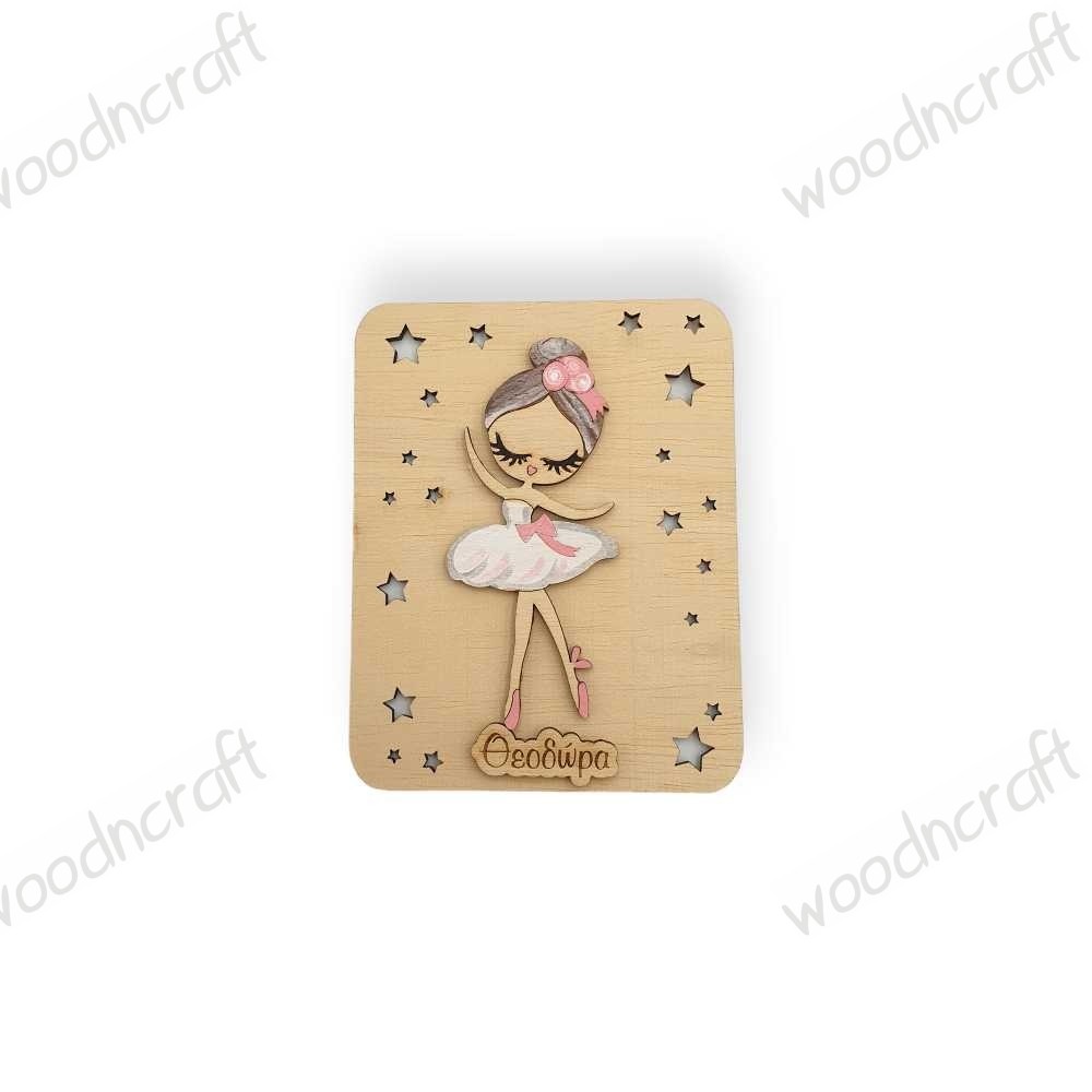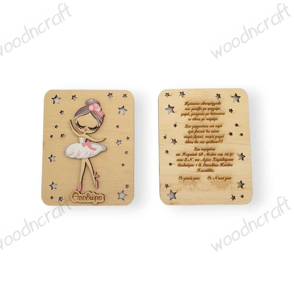 Ξύλινο προσκλητήριο καδράκι - Μπαλαρίνα με όνομα