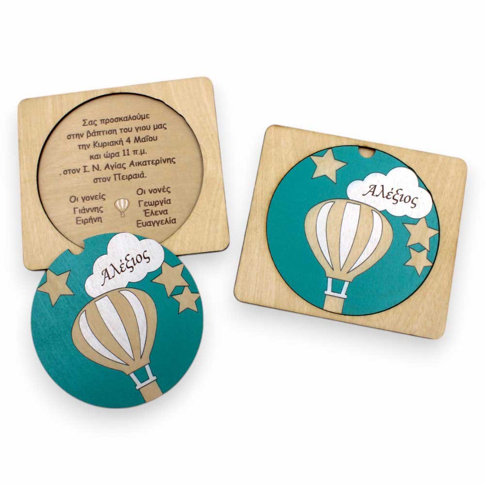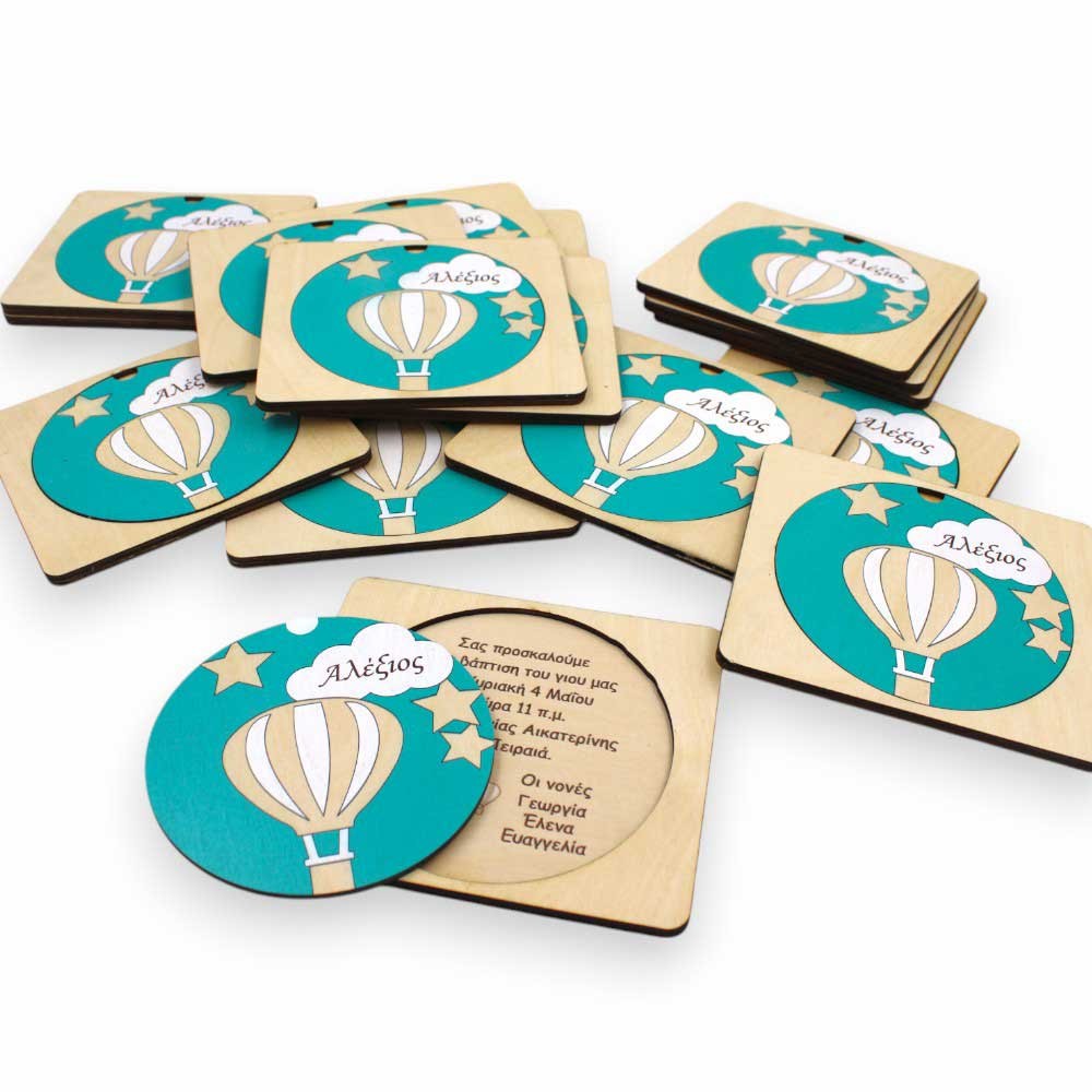 Ξύλινο Προσκλητήριο Παζλ - Αερόστατο με όνομα