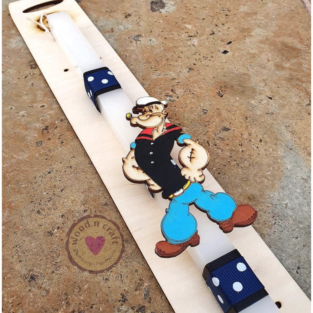 Πρωτότυπη χειροποίητη πασχαλινή λαμπάδα διακοσμημένη με ξύλινη φιγούρα Ποπάυ!
