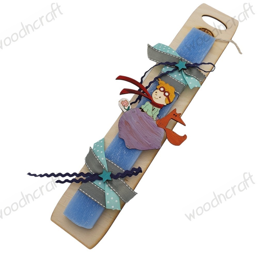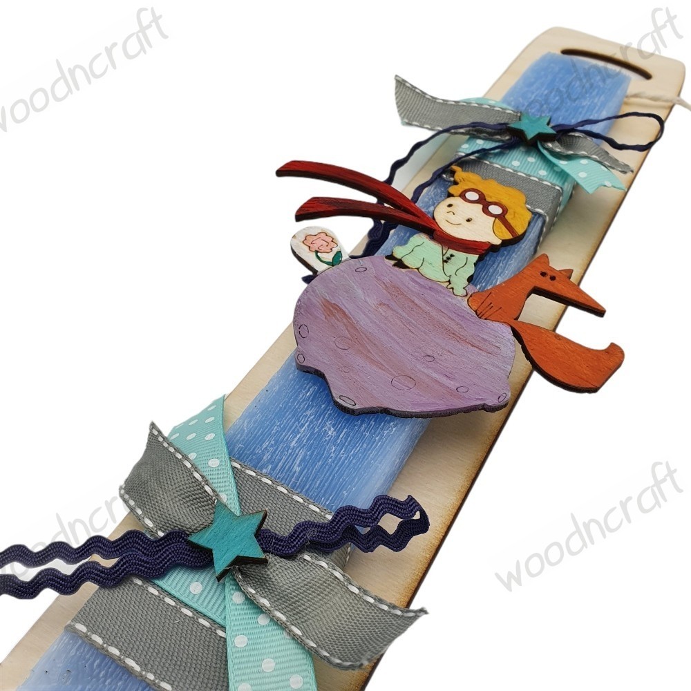 Πρωτότυπη χειροποίητη πασχαλινή λαμπάδα με τον αγαπημένο Μικρό Πρίγκιπα σε σετ με ξύλινο διακοσμητικό κάδρο με όνομα, διακοσμημένη με κορδελάκια και ξύλινα αστεράκια!