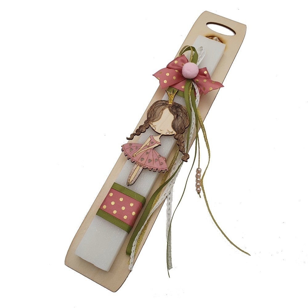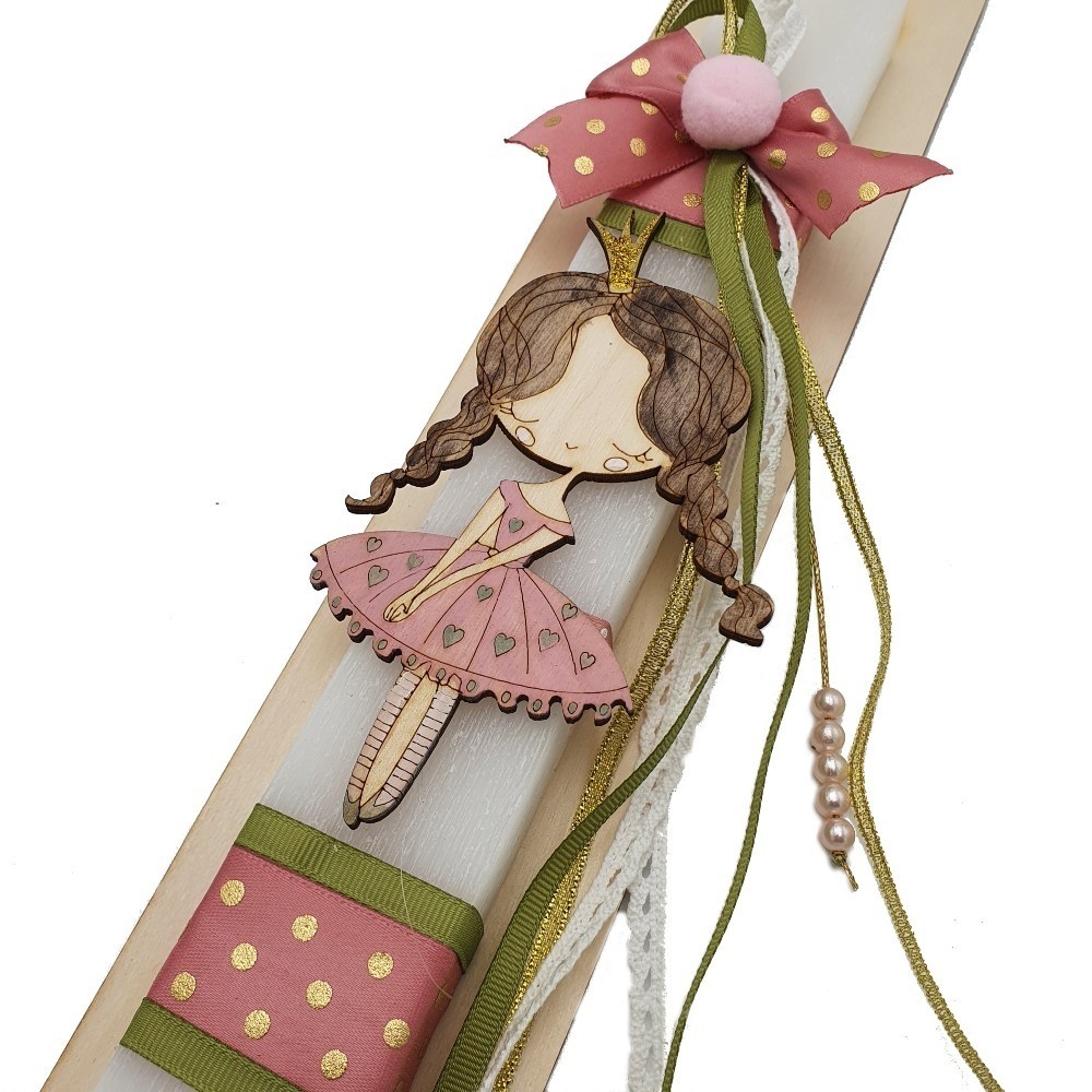 Πρωτότυπη χειροποίητη πασχαλινή λαμπάδα σε σετ με ξύλινο διακοσμητικό κάδρο My little princess. Διακοσμημένη με κορδελάκια, πέρλες και ξύλινη φιγούρα κοριτσάκι πριγκίπισσα βαμμένη στο χέρι!