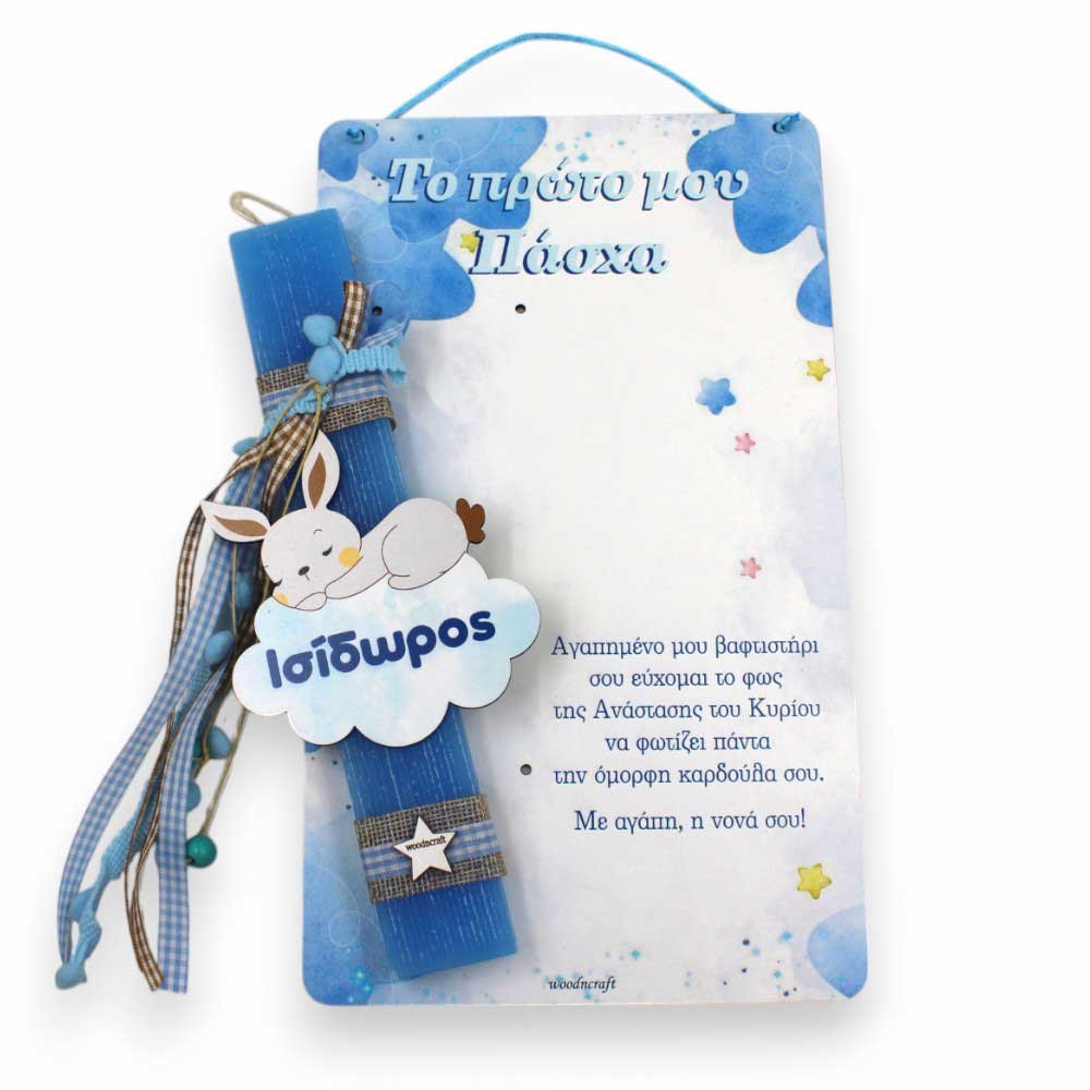 Λαμπάδα με πλάτη αφιέρωσης - Κουνελάκι σε σύννεφο