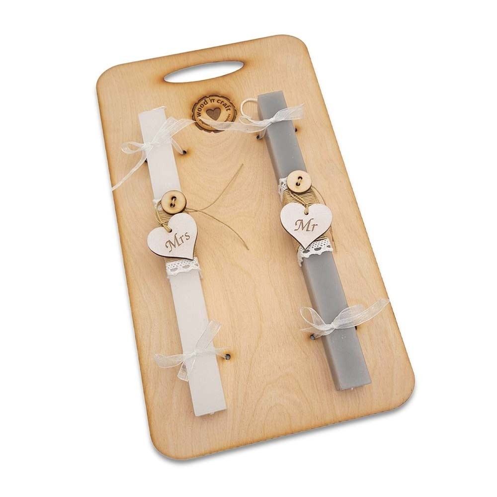 Σετ λαμπάδες - Ζευγάρι καρδιές Mr & Mrs