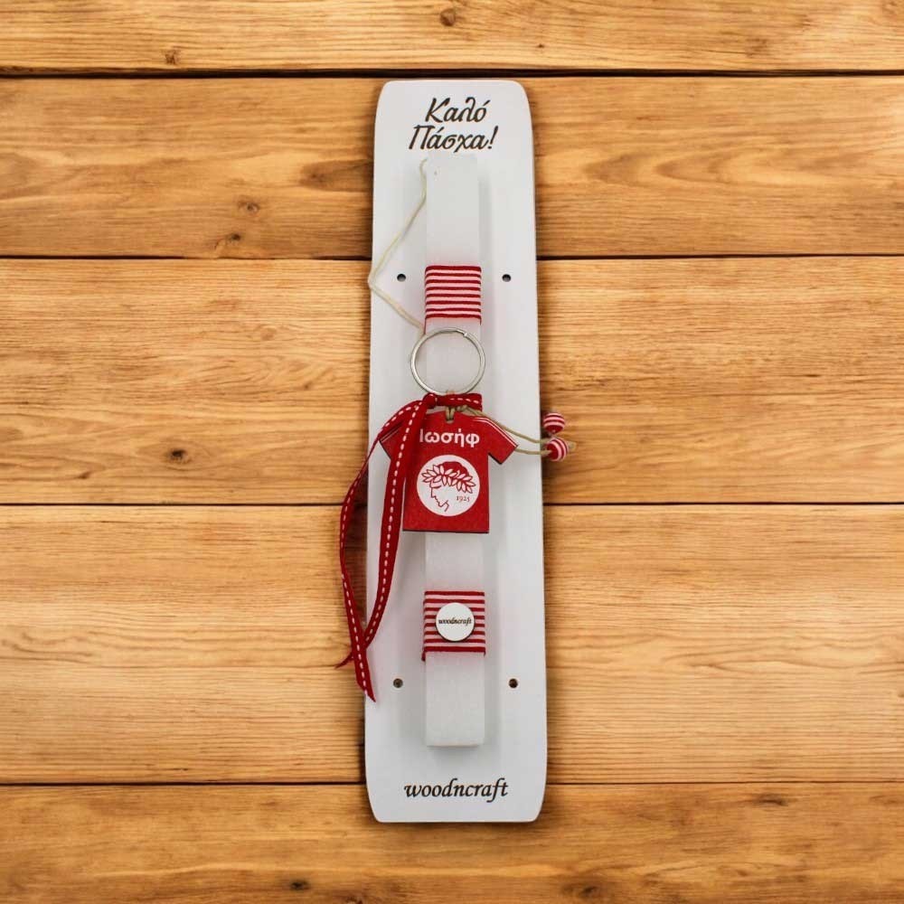 Η λαμπάδα, διακοσμημένη στα χρώματα και το έμβλημα της αγαπημένης σας ομάδας, συνδυάζει παράδοση και πάθος για το ποδόσφαιρο.