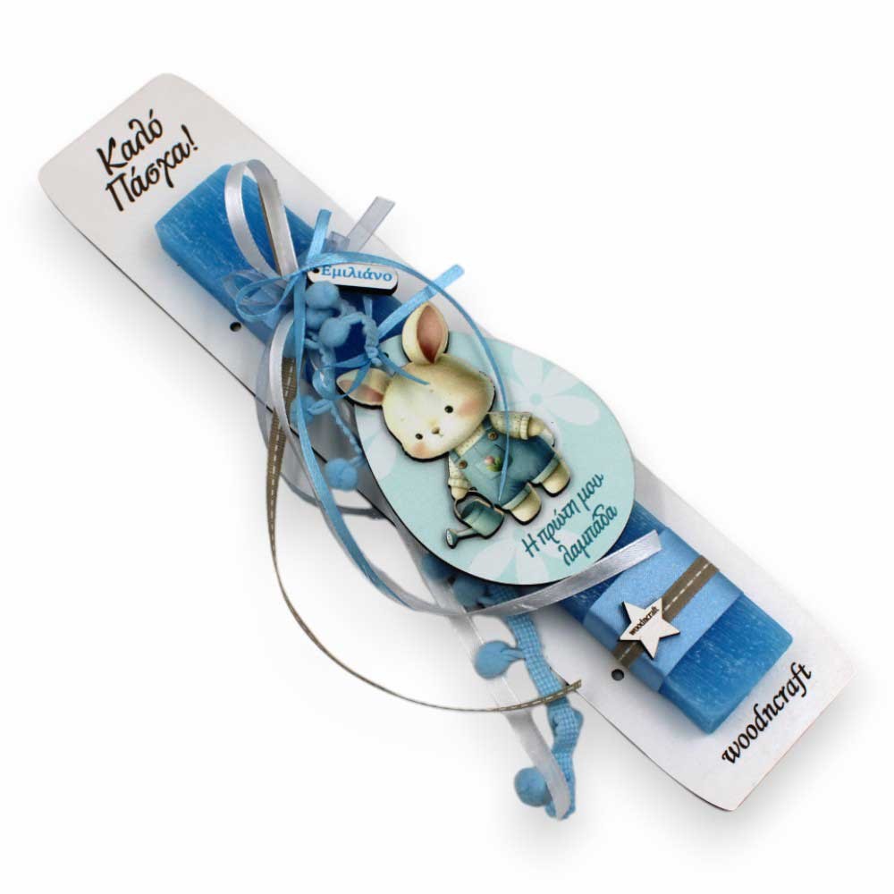 Μια υπέροχη, αρωματική λαμπάδα σε γαλάζιο χρώμα (25 εκ.), σχεδιασμένη για να κάνει το πρώτο Πάσχα του μικρού σας θησαυρού αξέχαστο!