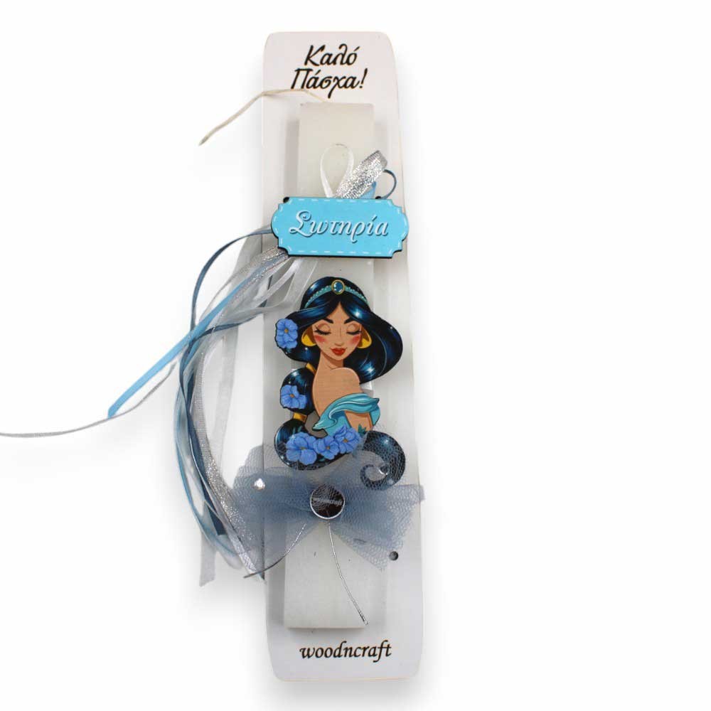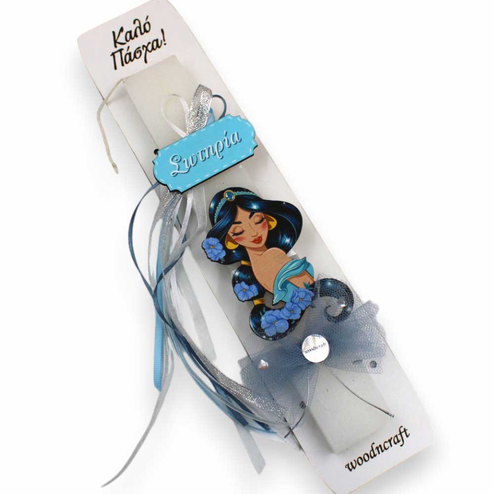 Αυτή η πλακέ, αρωματική λαμπάδα 25 εκ. είναι διακοσμημένη με μια ξύλινη UV-printed φιγούρα της πανέμορφης Γιασμίν, που προσδίδει μια αίσθηση παραμυθιού και κομψότητας.